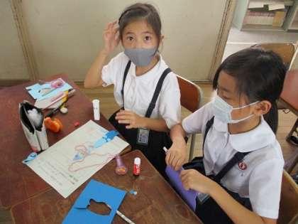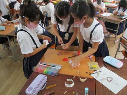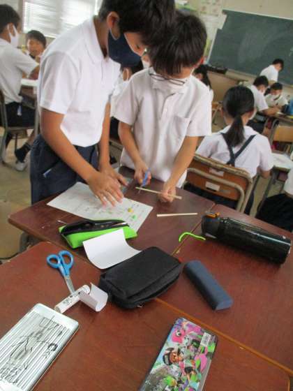 「すみですみか」の住人作りを行いました。限られた材料の中で、グループで協力して作っていきました。頭の中で想像していたものが形になっていくと、うれしそうでした。少し時間が足りなかったので、もう一度作る時間を設けようと思います。