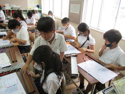 3年生の時にもするはずだった、「そろばん」に2日間かけて挑戦しました。1日目は「楽しい。もっとしたい。」と言っていましたが、2日目は「難しい。暗算の方がいい。」と反対のことを言っていました。学校では使い方を学び、簡単な練習しかしませんが、興味をもって取り組むことができました。
