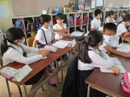 今回の外国語活動は「What day do you like?(あなたの好きな曜日は?)」です。曜日の言い方を覚え、友だちにインタビューしました。多い子で11人の子に聞くことができていました。土曜日や日曜日が多いのは予想していたのですが、意外と木曜日も多くてびっくりしました。