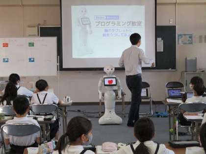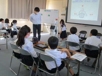 プログラミング学習の2回目を行いました。4年生は2回の学習で教えてもらったことを使って、子ども祭りの時にペッパー君を使ってお店当番を行います。「ペッパー君にどんなことをしてもらえるか」「それをどうやってプログラミングしていこうか」を、これからみんなで考えていこうと思います。