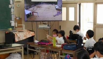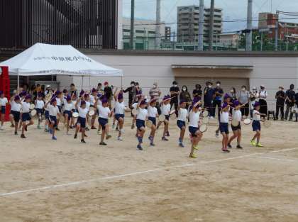 今年で2度目となる4年生のエイサーは、さすがでした。パーランクーの音もきれいにそろっており、動きもきびきびと、貫録を見せてくれました。全体練習の時にお手本として見せた3年生からも感嘆の声が聞こえていました。前半の1・3・5年生が運動場で演技している間は、教室でしっかり画面を通しての応援をしていました