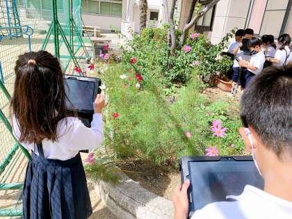 生活科の時間に,秋探しを行いました。。コスモスが咲いていたり,運動場の木に柿がなっていたり,校内の様子も夏から秋へと変わり始めてきています。子どもたちは,タブレットをもって,見つけた秋の写真をたくさん撮ることができました。