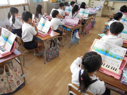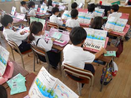今日も鍵盤ハーモニカをしました。前の学習を振り返りながら、曲を練習をしました。ゆっくりですが、右手でドレミを押して、リズムよく演奏できました。