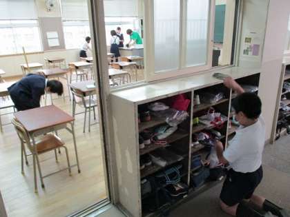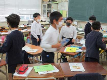 上の写真は「配り係」です。休み時間になるとすぐに配りものをしてくれます。配るものがたまっていることは、ほとんどありません。