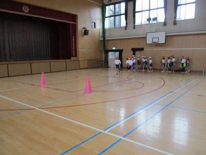 雨だったので、体育館でのタグラグビーとなりました。今回のめあては「パスを成功させること」です。パスはする側・もらう側の両方が上手に動けないと成功しません。もう少し、いっぱい練習して上手になってほしいです。