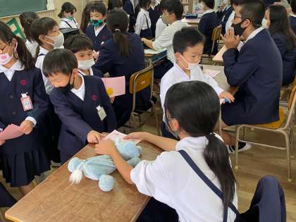 6年生は、笑顔で受け取り、「また遊ぼうね!」など声掛けをしていました。
