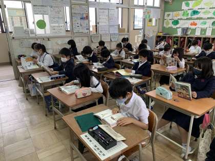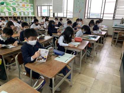 今週は読書週間になっています。10分間一人ひとり集中して本を読んでいます。たくさんの本と出会って自分の知識にしてほしいと思います。
