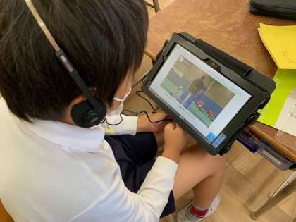 タブレットを使用し、パラリンピックについて調べています。パラリンピックで行われる競技には、初めて知る競技もあったのでわくわくしながら調べていました。また動画などをみることで競技の魅力や見どころが分かったようです。