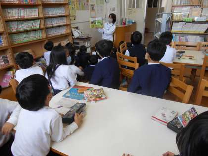 図書の時間は、始めは自分で本を選んで読んでいます。残り15分は読み聞かせをしてもらっています。今日は、「サンマの開き」の本を読んでもらいました。みんな楽しく聞いていました。