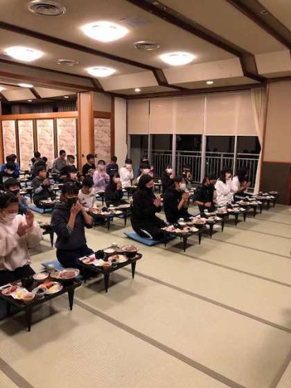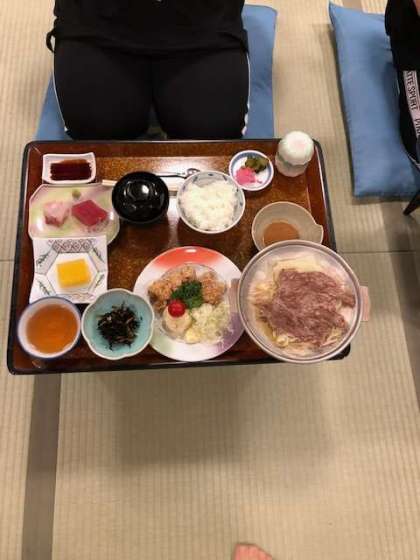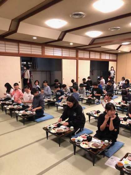 待ちに待った夕ご飯です。1人ずつのお膳を用意していただき、素晴らしい御馳走をいただきます。