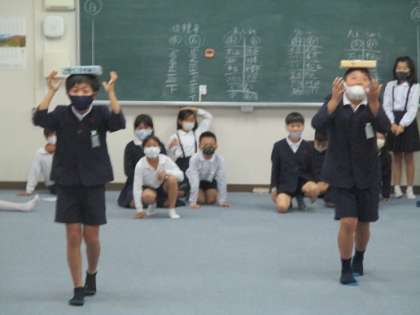 みんな遊び2時間目は、多目的室で「ミニ運動会」を行いました。