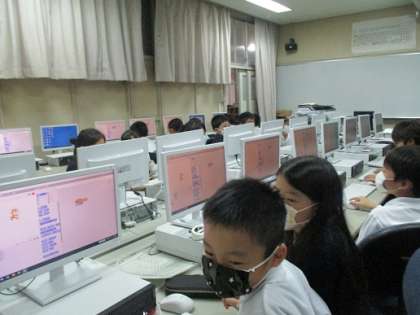 理科の授業の時間だったのですが、1日リフレッシュ日だったので、プログラミングの学習をしてくれました。ペッパー君の学習と少し似ているので、いろいろと自分で試してできている子が多かったです。パソコンから「ニャーニャー」と猫の鳴き声が、ずーっと教室に鳴り響いていました。この時間もチャイムが鳴るギリギリまで楽しんでいました。