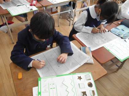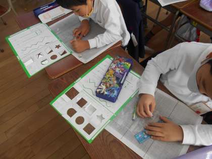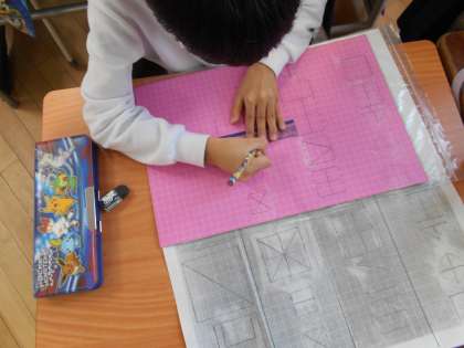 先週カッターナイフで窓を作る練習をしました。今日は、自分で窓を紙に描いてみました。いろいろな大きさや形の窓を描きました。来週はそれを切ってみてどのような窓になるのか試してみます。