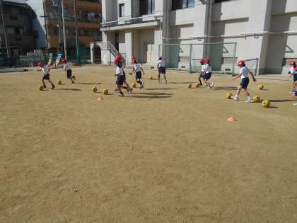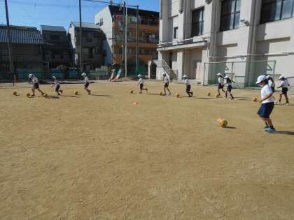 着替えた時は、少し寒いと言っていた児童ですが、縄跳びをすると寒さを感じなくなっていました。そして体が温まってからのボールを蹴る運動では、トラックを1周蹴って進みました。一回目は、慣れていないせいか時間がかかりましたが、2回目にはずいぶん早くで来るようになりました。少しずつ、ボール蹴りに慣れてきているように思いました。