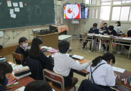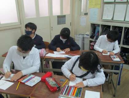 「まぼろしの花」のアイデアが完成し、「さぁ、作品作りスタート!!」とみんなは思っていたみたいですが、今回は実際に存在するいろいろな花の絵をみんなでかきました。どうしても「花の絵」となると、みんな似てきて形が決まってくるからです。「こんなのもおもしろいよね」と確認しながらかきました。「自分の想像した花は、どんな形が合うかな?」と考えて書いてくれたと思います。