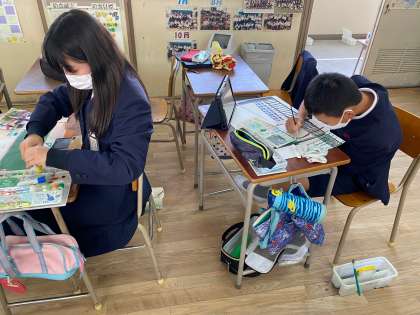 明るい部分や暗い部分など、色を工夫しながら絵具で描いていきました。