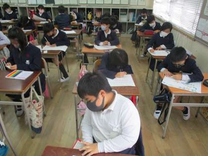 子どもまつりに向けて、中泉尾小学校の〇×クイズを作りました。みんなが考えたクイズは、どれも少し悩むいい問題です。自分の手で、絵もつくながら画用紙に書きました。