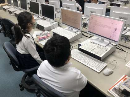 国語の時間では、和語、漢語、外来語について学習しました。その中でも外来語について、より詳しく知るために、身近に使われているカタカナの言葉は、どこの国から日本に伝わったのかパソコンを使って調べました。
