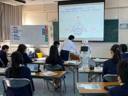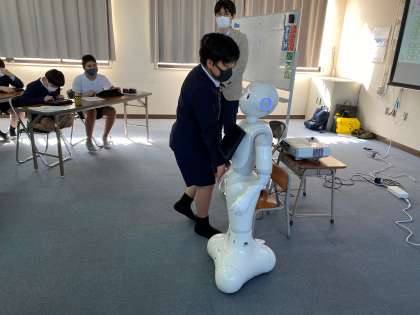 今日のプログラミング学習では、タブレットを使用してペッパー君を動かす学習をしました。