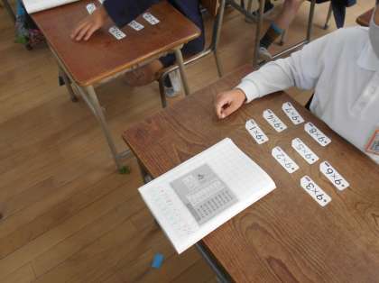 今日は九の段の言い方を覚えました。計算カードを使って式と答えを合わせるようにしました。残りは1のだんになります。2のだんから順に言えるように家でも練習しましょう。