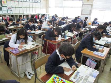 「天神祭り」の学習をしています。1時間ごとに学習したことを、新聞にまとめていっています。単元が終わった時には、学習したことがまとめられた新聞が出来上がる予定です。今日は1回目でした。