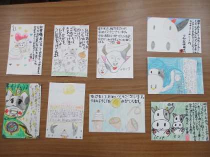 年賀状を書く学習をしました。宛名を書くことが、あまり経験がないみたいで、時間がかかりました。うらに絵とメッセージを書くのはすごく楽しんでやっていました。