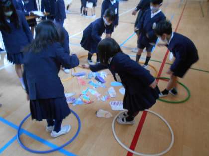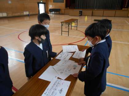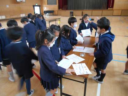 2時間目に土曜授業でする予定だったおまつりのお店を、講堂に準備しました。明日全学年のお店をそろえて遊ぶためです。きょうは、自分たちが作ったお店で遊びました。2年生は魚釣りと2−1クイズで、みんな楽しそうに遊んでいました。明日、他の学年のお店が楽しみです。