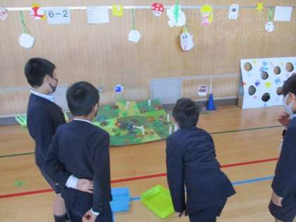 他のクラスのお店で遊びました。20分間しかなかったですが、上手に空いているお店で順番に遊んでいました。待ち時間が少ない分、たくさんのお店で遊べたみたいです。4年生のお店でも楽しんでもらえたのでしょうか?それも知りたいところですね!!4年生の中では、3年生のジェスチャーゲームが人気でした。