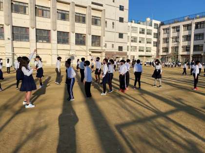 今日の朝のなわとび週間での取り組み内容は、大繩でした。