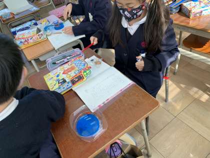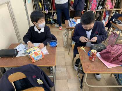 「磁石につくもの」では、身の回りにあるものでどんなものが磁石につくか実験をしました。予想したものを調べ、予想と違うものがあった時は驚いていました。