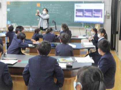 「水の温まり方」の予想を立てました。次回が実験です。青く染まった水が、温まっていくと色が変わるそうです。その不思議な水に、興味津々でした。