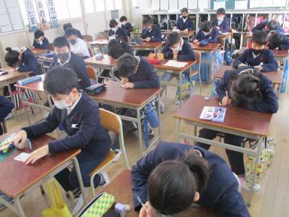 今週は給食週間です。クラスでは、給食調理員さんへの日頃の感謝の手紙を書きました。毎日お世話になっているので、子どもたちは迷うことなくスラスラ書けていました。金曜日に渡しに行く予定です!!