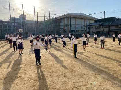 今日の朝の縄跳び運動は、短縄でした。