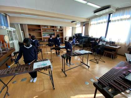 合奏の練習を頑張っています!みんなで合わせるとまだまだついていけない人もいますが、形になってきました!休み時間なども使ってたくさん練習してほしいです。
