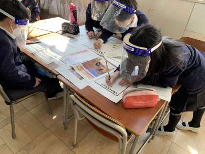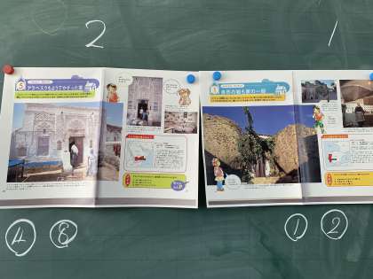 「人をつつむ形」では、学習してきたことを活かして、教科書にない国の家の工夫をグループに分かれてまとめていきます。世界の国の家は様々な工夫がされていることに子どもたちは驚いていました。