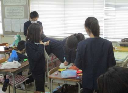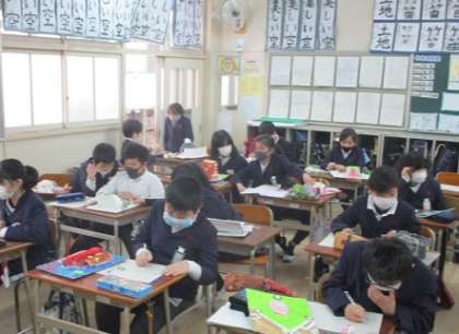 作品展に展示する立体作品が完成しました。自分の作品作りのふり返りと、お互いに鑑賞していきました。自分にはない発想や表現の工夫をたくさん見つけられていたと思います。次の自分の作品に活かせるといいですね。
