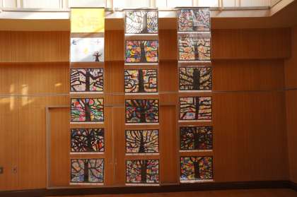 国語の「もちもちの木」をイメージした絵は、とても幻想的に仕上がりました。慣れない手つきで金づちを持ちながら、くぎをまっすぐ打つのはとっても難しかったですね。