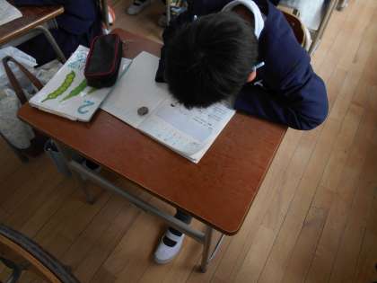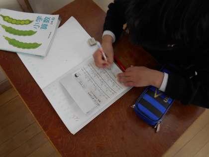 算数の時間にプリントをしました。大きな数の学習で、数直線を見て数を書きました。1めもりの大きさを見つけて答えを出す学習をしていて、1めもりが1だけではなく、10や100の時もあるので考えて答えていました。