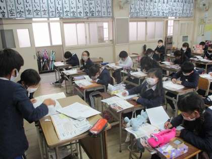 いよいよ調べてきたことのクラスへの発表が始まりました。緊張することなく、堂々と話せていたと思います。時間が限られているので、思ったようにいかなかったこともあったようですが、聞いている方も集中して協力しようとする姿勢が表れていました。