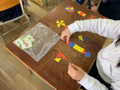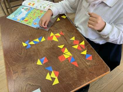 いま,算数科の学習では,「いろいろなかたち」の学習や「たしざんとひきさん」の学習を行っています。