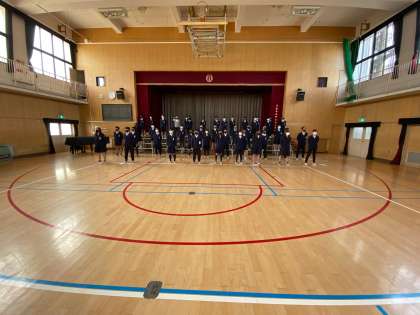 今日も、歌や呼びかけの練習をしました。今日のテーマは『伝える』です。声の大きさやトーン、間など、いろいろなことを意識しながら、聞いている人がいると思って練習していきました。声だけでなく、表情や立ち方などでも、相手に伝えられることはたくさんあります!次の練習でも意識して取り組んでほしいです!