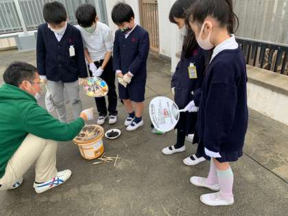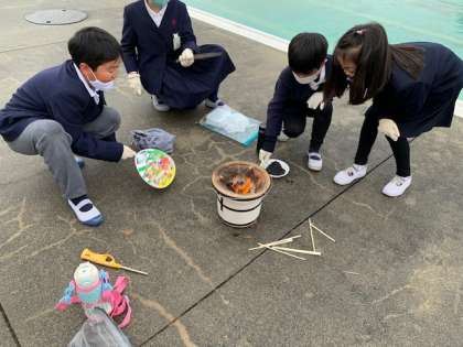 「昔の暮らしを体験しよう」では、火おこしの仕方を体験しました。
