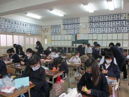 幸せを運ぶカードの完成が増えてきました。完成した子は、違う友だちにも作り始めています。夢中になって作っているので、1時間はあっという間です。