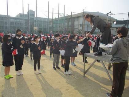 全校朝会で「漢字検定」「清潔検査」の表彰がありました。