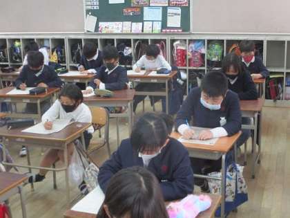 プリントを使って復習を行っています。「小数のわり算」が苦手な子が多いことがわかりました。わり切れるまでするのか、〜の位まで計算するのか、概数にするのか。答えの求められ方がいろいろあり、まだ戸惑っている様子です。わり算の計算は定着しているように思います。