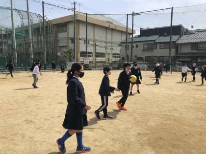 昼休みのみんな遊びでは、ドッジボールをしました。少しずつ気温も暖かくなり、子どもたちもいきいきしながら楽しんでいました。