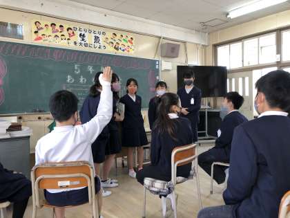 今日は、ゲームやクイズをしたり、グループの出し物を観たりして楽しい時間を過ごしました。今年は、コロナの影響でなかなか楽しい時間を作ることができませんでしたが、最後に、お楽しみ会やお別れ会ができてよかったです。自分たちで計画し、会を進める姿を見て、本当にみんな成長したなぁと嬉しくなりました。
