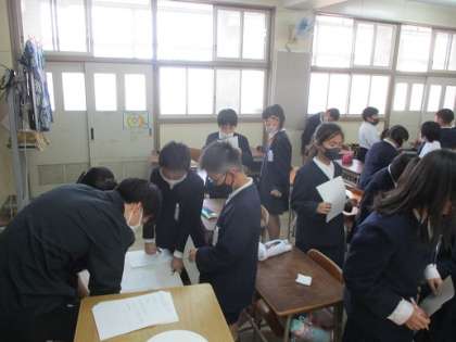 5年生から外国語活動が週2時間に増えました。今日は「英語で自己紹介する」が、めあてでした。自己紹介に使う3つの文を教えてもらいました。リズムに乗って練習したり、サイン交換をしてコミュニケーションをとったり、プリントに書いて練習したりと、あっという間の時間でした。子どもたちは楽しそうに活動し、いきいきとしていました。