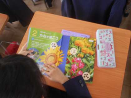 今日は初めて理科の授業をしました。理科はどんな勉強をするのかを知り、教科書を見ながら、期待を膨らませていました。最後に、知っている虫をノートに書きだしました。明日からは学校にどんな虫がいるかを探しに行きます。