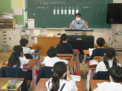 3年生になって初めての音楽の授業をしました。今日は、体を使って音楽を奏でる「ボディーパーカッション」をしました。手をたたいたり、肩をたたいたり、足を使ったりして取り組みました。